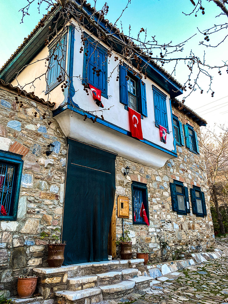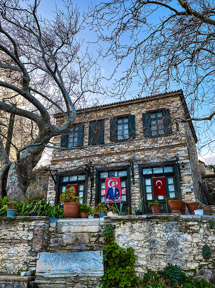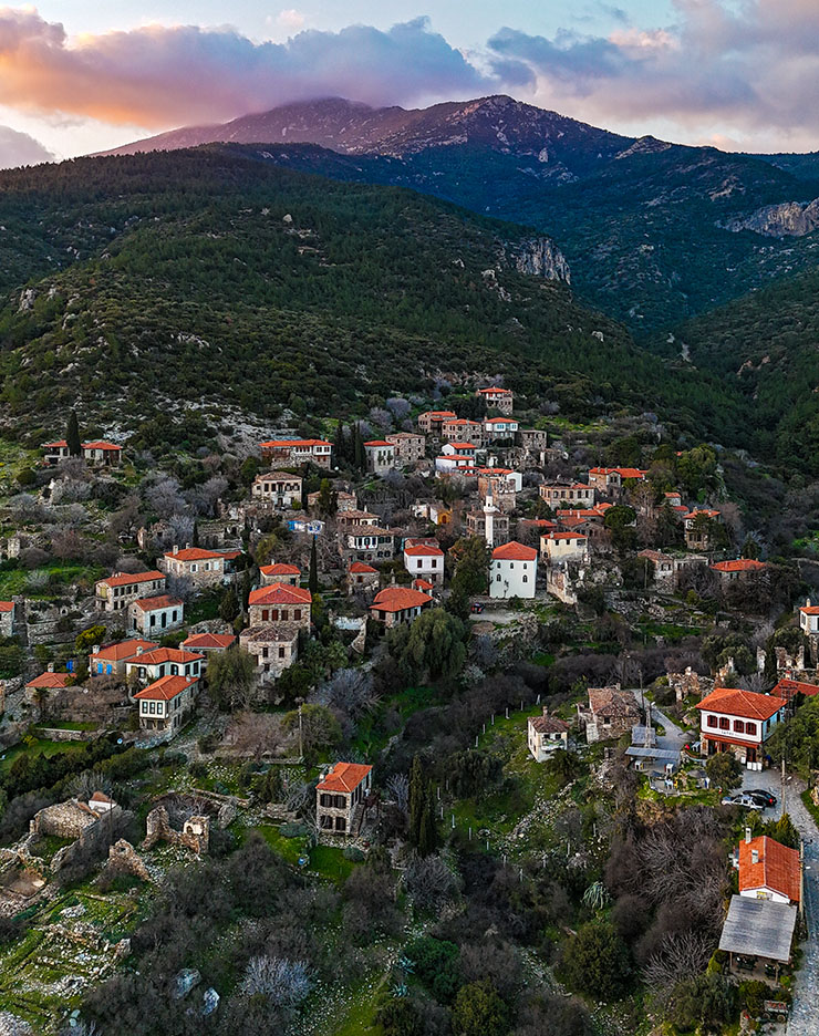 Hayatın aceleci ritminden, kalabalıktan ve yüksek sesten izole, kendi kendine rafine bir hayat yaratanların köyü Doğanbey! Arnavut kaldırımlı sokaklarında yürürken burayı memleketin en ütopik yeri ilan edebilir ve gezdiği yerden etkilenip gelecek hayallerine eklemek isteyen herkes gibi “Keşke burada bir evim olsa” diyebilirsiniz. Baştan söyleyelim; Doğanbey öyle köklü gelenekleri olup da günümüzle harmanlamış, boşluk arsaları gelişigüzel binalarla doldurup popülerliğe kaymış köylerden değil. Köyde güzelliğine iç geçirten her ev, sahiplerinin özenle restore ettiği birer emek abidesi. Burası eski bir Rum Köyü ve ‘Dili olsa da maziyi anlatsa’ dedirtecek kadar da zengin bir tarihin şahidi!