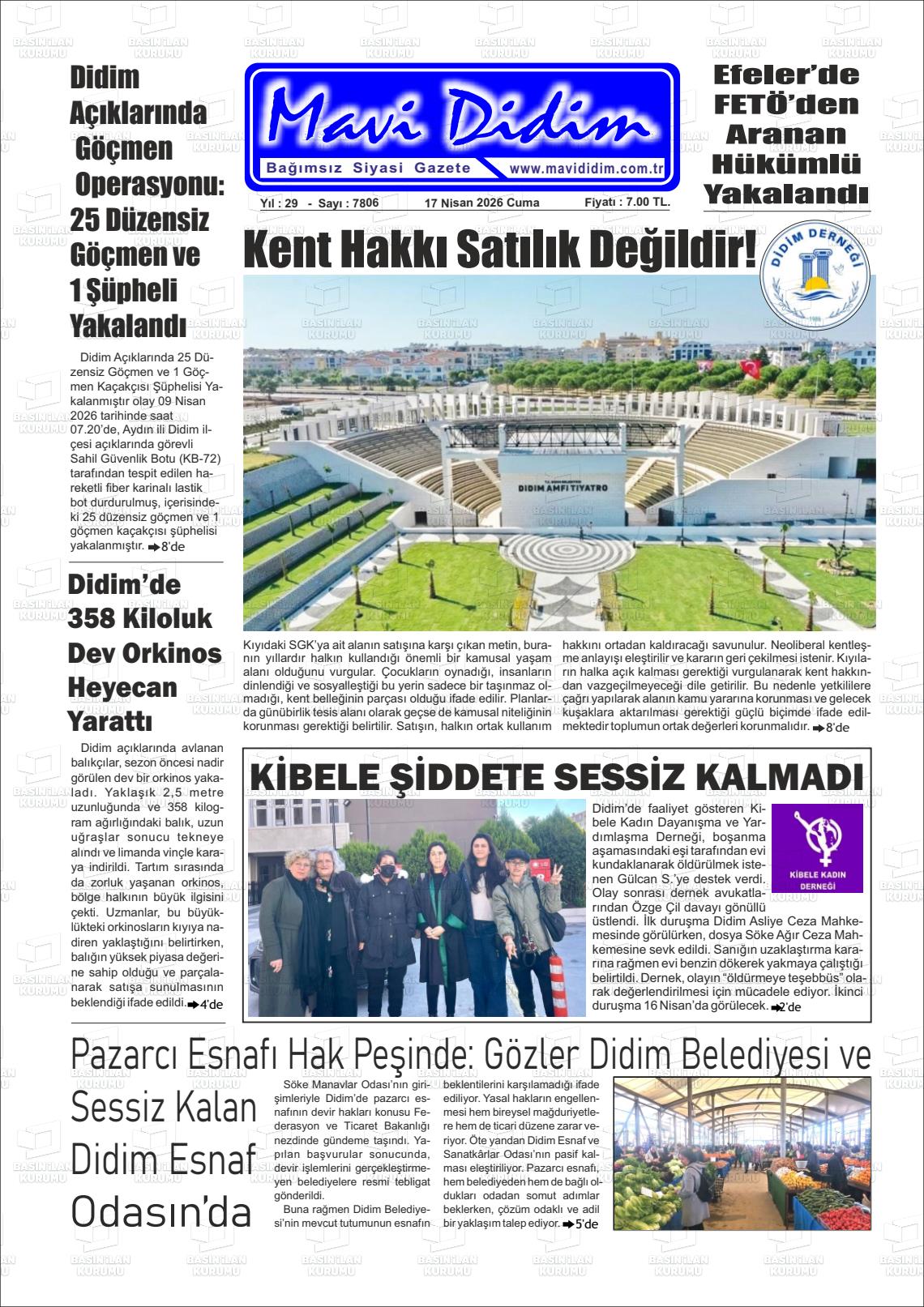 Aydın Yerel Gazeteleri 17 Nisan 2026, Cuma Günü Manşeti